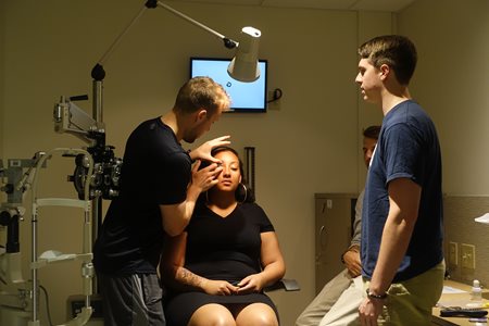 Pop music flows through the waiting room as guests enjoy hors d'oeuvres, desserts and soft drinks. One guest exclaims as she looks in the mirror at her afresh gemstone green eyes. Another is having difficulty choosing whether light blue, honey or gray would work best with his complexion and hair color. From an outsider’s point of view, the evening may look like a high-end product showcase, but in reality, it was an extracurricular activity for the University’s Optometry students to refine their contact lens fitting skills.