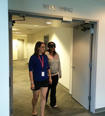 A week or two later the O&M students have progressed to using white canes and the tap, tap – and occasional clunk – sounds they generate while trying to get their bearings are normal summer sounds to the University community.